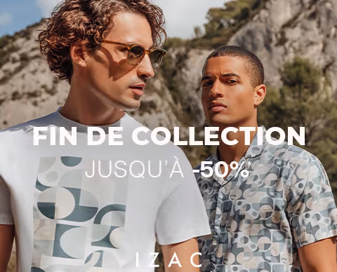 Jusqu'à -50% sur une large sélection de produits de collection printemps/été 25 en boutique et sur http://izac.fr