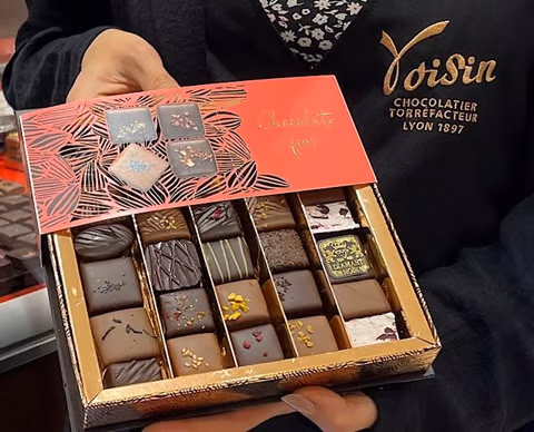 Dépositaire des précieux savoir-faire de la gastronomie lyonnaise et en quête de faire découvrir les meilleurs crus de cacaos et cafés du monde aux lyonnais, Voisin compte sur sa brigade de maîtres chocolatiers pour exhaler le velouté d’un praliné naturel à l’ancienne, l’onctuosité d’une ganache des meilleures origines de chocolat.