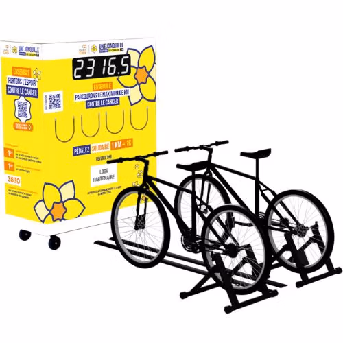 Installez-vous sur l’un de nos vélos solidaires, et réaliser un maximum de KM contre le cancer !